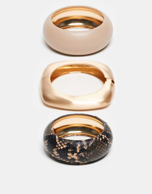 Aldo – Nolita – Set med armband i ormskinnsmönster, PU och guldfärg, 3-pack