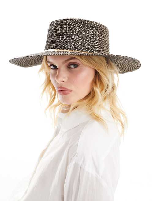ALDO – Svart stråhatt med brett brätte och guldkedja