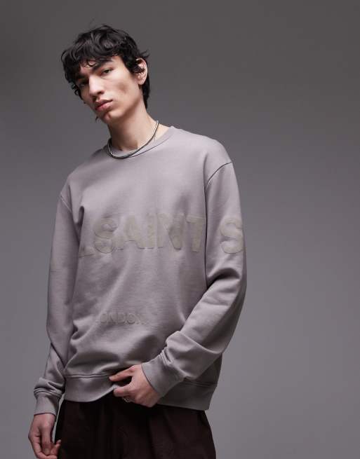 AllSaints – Biggy – Ljusbrun sweatshirt med tonad logga