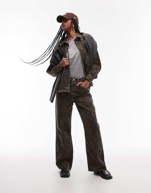 AllSaints – Blake – Leopardmönstrade jeans med vida ben