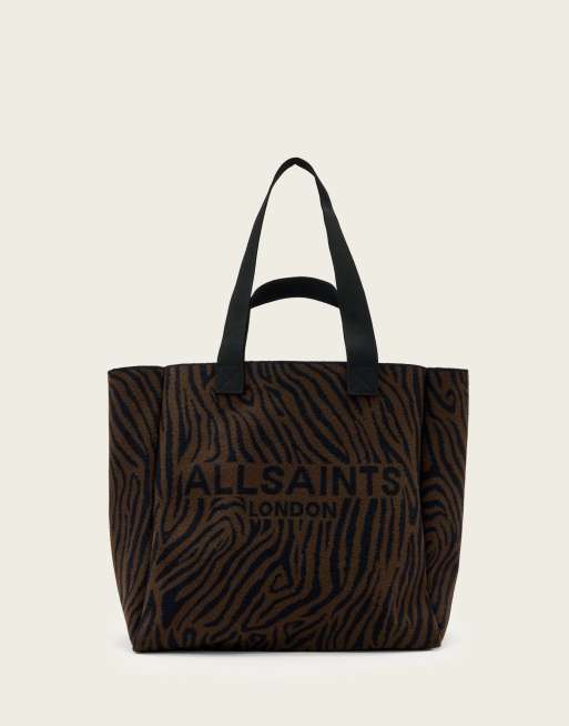 AllSaints – Izzy – Brun toteväska med zebramönster