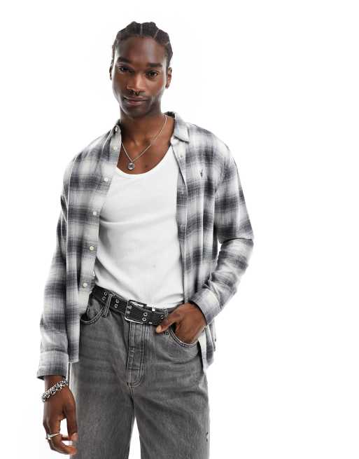 AllSaints – Omega – Grårutig t-shirt med lång ärm