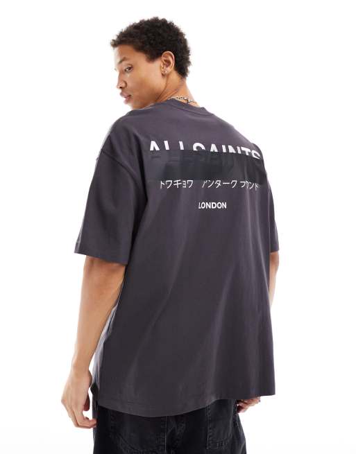 AllSaints – Redact – Bleksvart oversize t-shirt med broderad logga