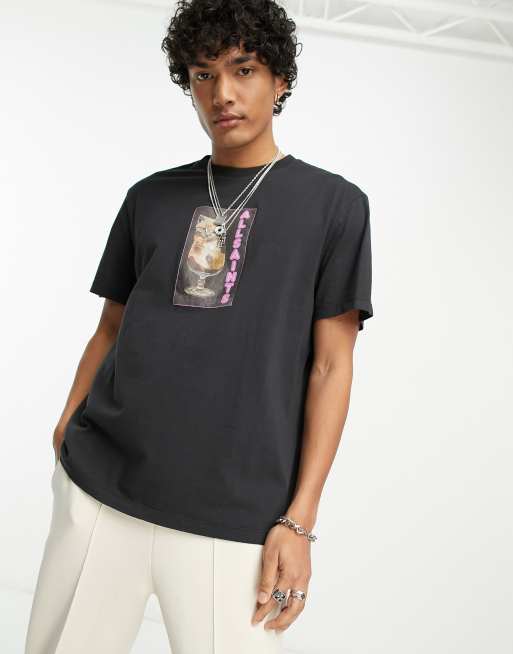 AllSaints – Sherry – Svart T-shirt med grafiskt tryck