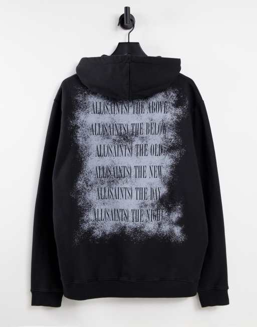 AllSaints – Svart huvtröja i anorakmodell med skuggigt tryck