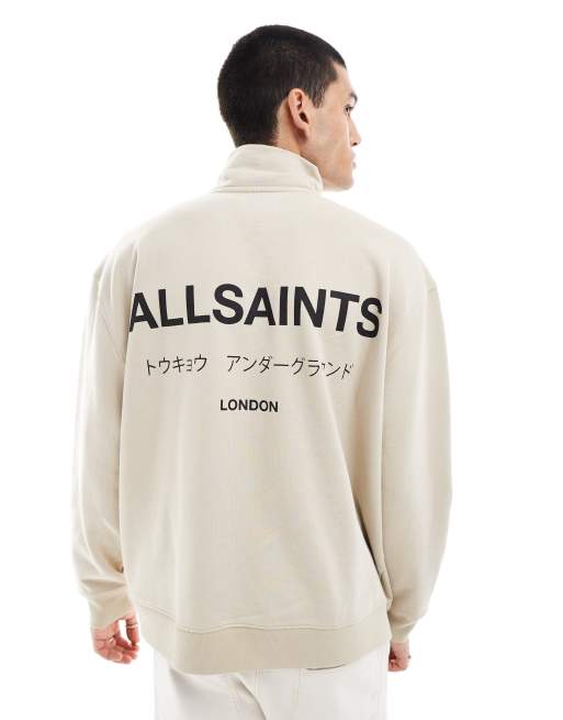 AllSaints – Underground – Beige sweatshirt med 1/2-lång dragkedja
