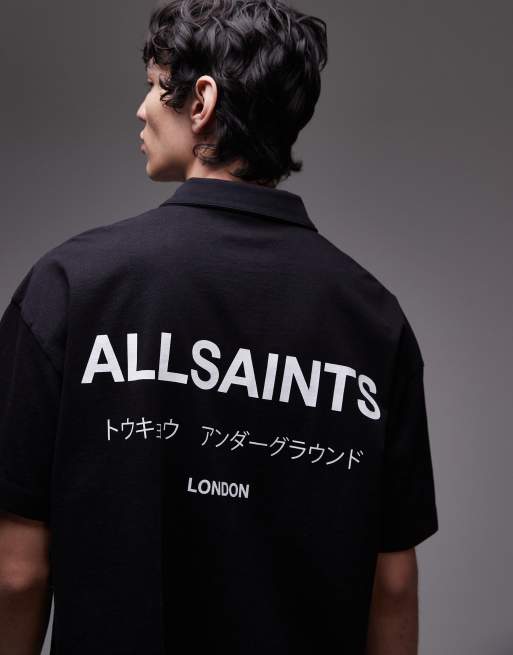 AllSaints – Underground – Svart pikétröja med korta ärmar