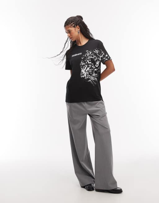 AllSaints – Zaya – Svart t-shirt i boyfriend-modell med korta ärmar och tryck
