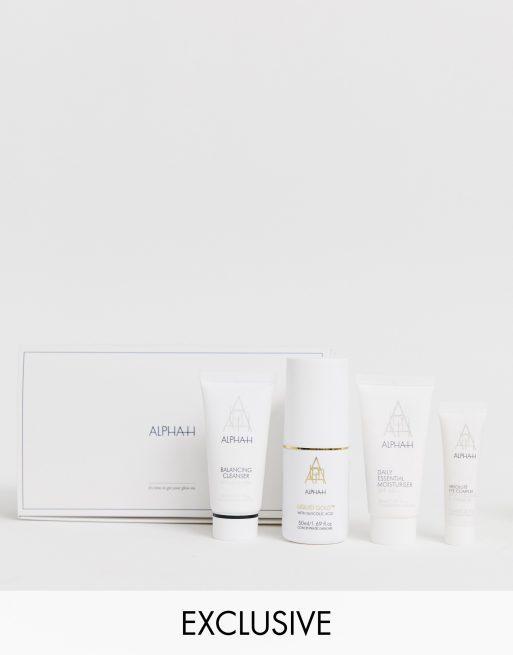 - Alpha-H är experter inom exfoliering, ytbehandling och förnyelse av huden och fokuserar på att skapa resultatdriven hudvård. Som det prisbelönta skönhetsmärket bakom kultprodukten Liquid Gold är dess 3-stegs produkter är utformade för att aktivera och främja din hud. Bläddra i vår Alpha-H-edit på ASOS och upptäck förvandlande hudvård, från rengöringsprodukter och fuktkrämer till peeling och ansiktstvätt. Två ord: glow up.
