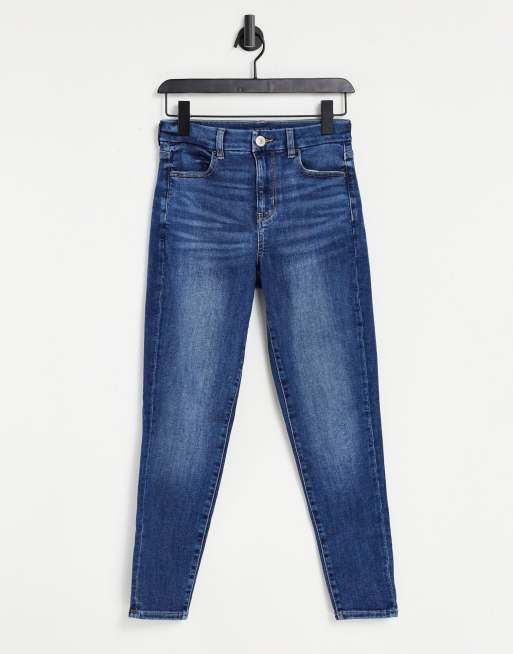 American Eagle – Mellanblå ankellånga jeggings i denim med timglasmodell och hög midja