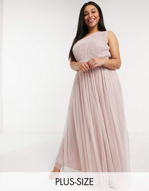 Anaya With Love Plus – Brudtärnor – Rosa maxiklänning i tyll med en bar axel