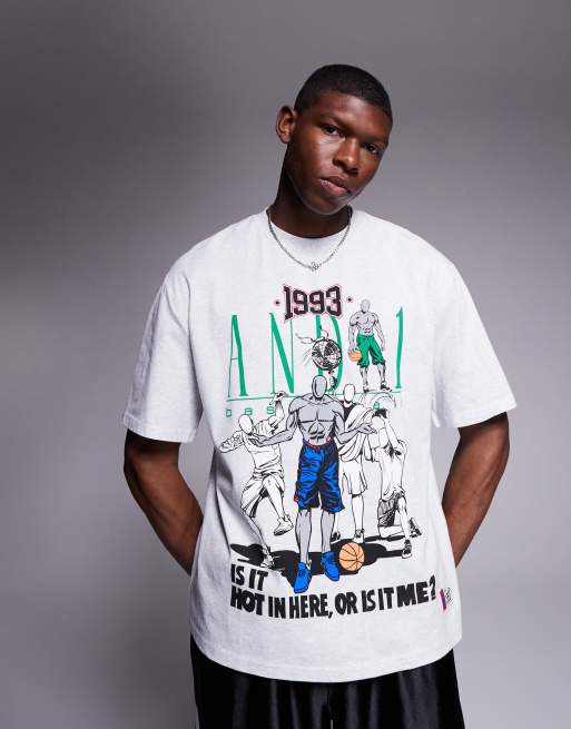 AND1 – Ljusgrå t-shirt i oversize med sportigt tryck
