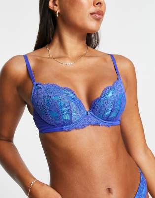 Ann Summers – Blå vadderad spetsbehå med djup urringning