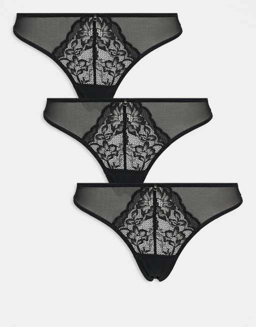 Ann Summers – Sexy – Svarta stringtrosor i spets, 3-pack