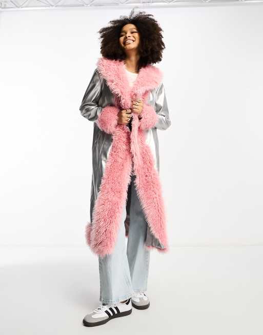 Annorlunda – Silvermetallisk och rosa kappa med kanter i fårskinnsimitation