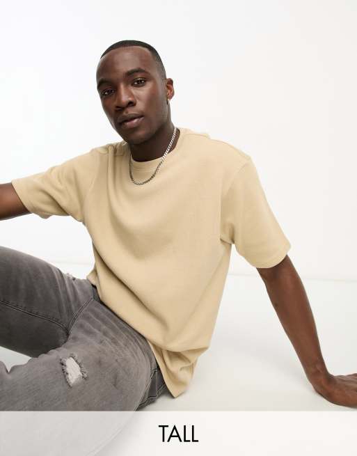 Another Influence Tall – Beige, ribbad, slouchy t-shirt i kraftigt material