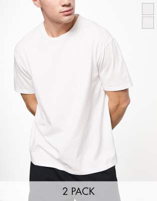 Another Influence – Vit t-shirt med boxig passform, 2-pack