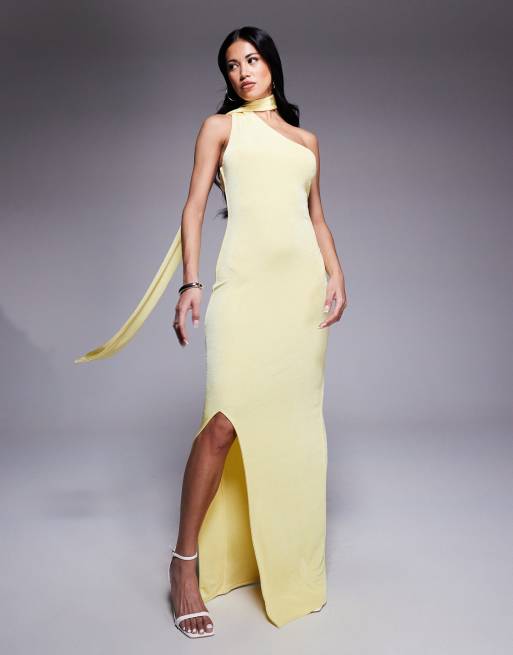 Aria Cove – Gul, enaxlad maxiklänning med sjaldetalj