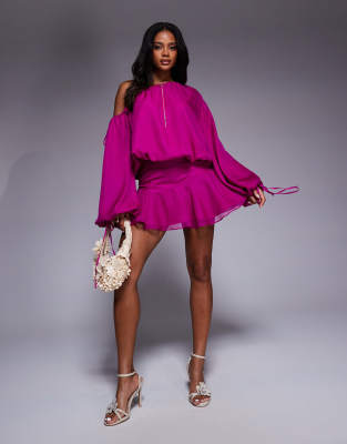 Aria Cove – Lila miniklänning i chiffong med vida ärmar och volangfåll