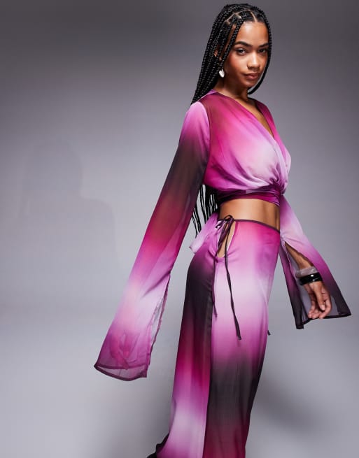 Aria Cove – Lila strandtopp i chiffong med omlott, slitsärmar och ombréeffekt, del av set