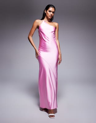 Aria Cove – Rosa, enaxlad maxiklänning med öppen rygg i satin