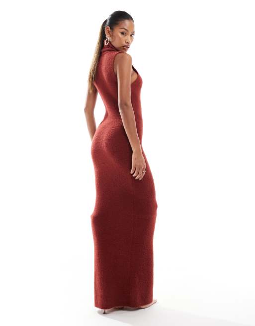 Aria Cove – Roströd, stickad, ärmlös tröjklänning i minilängd med polokrage