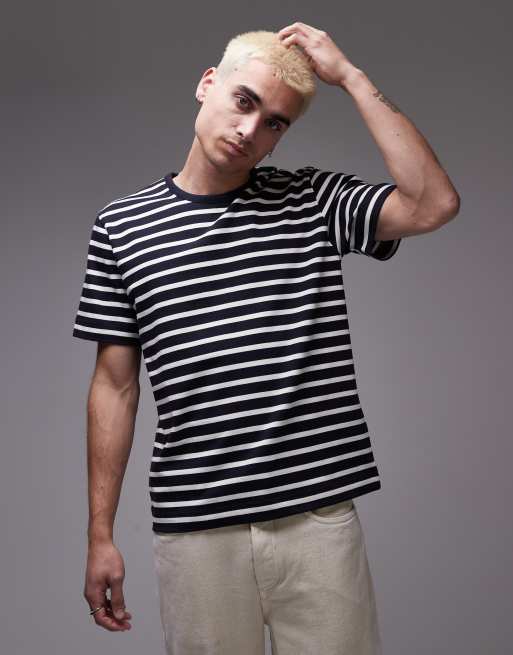 ARKET – Blå och vit, randig, kraftig t-shirt i oversize