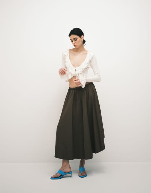ARKET – Brun kjol i bomull med dragsko och ojämn fåll
