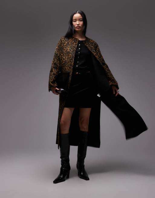 ARKET – Leopardmönstrad, kraglös maxikappa i dubbel ylle