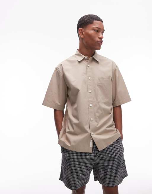 ARKET – Ljusbeige skjorta i äkta bomullspoplin med korta ärmar