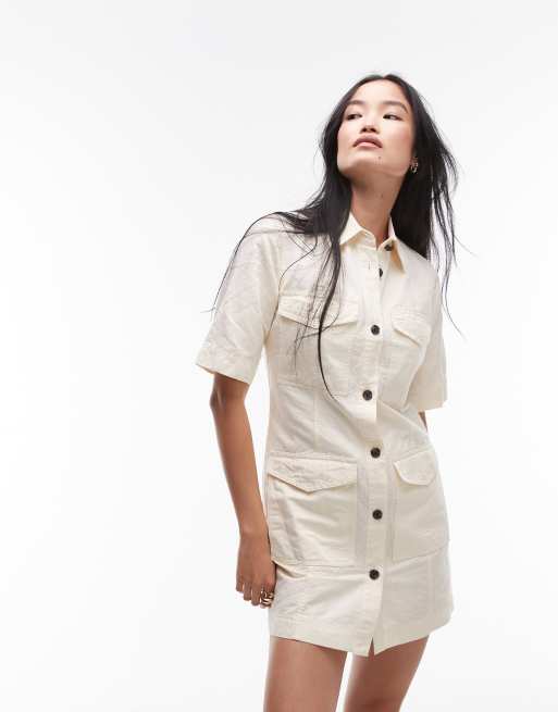 ARKET – Ljusbeige skjortklänning i minilängd med påsydda framfickor