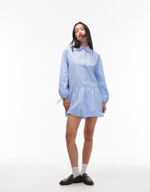 ARKET – Ljusblå skjortklänning med sänkt ballongfåll
