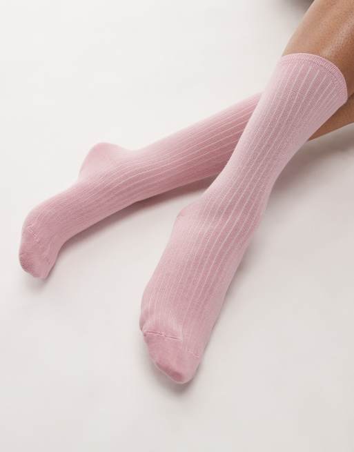 ARKET – Ljusrosa, ribbade strumpor i bomull
