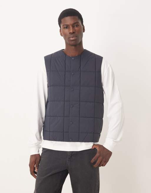 ARKET – Marinblå, vadderad väst med tryckknappar framtill