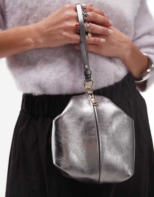 ARKET – Silvermetallisk, stor handväska i läder