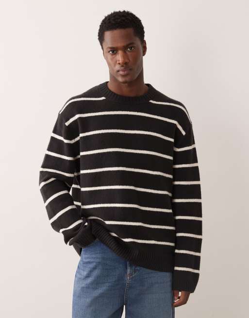 ARKET – Svart, randig tröja i bomullsrikt tyg med rund halsringning