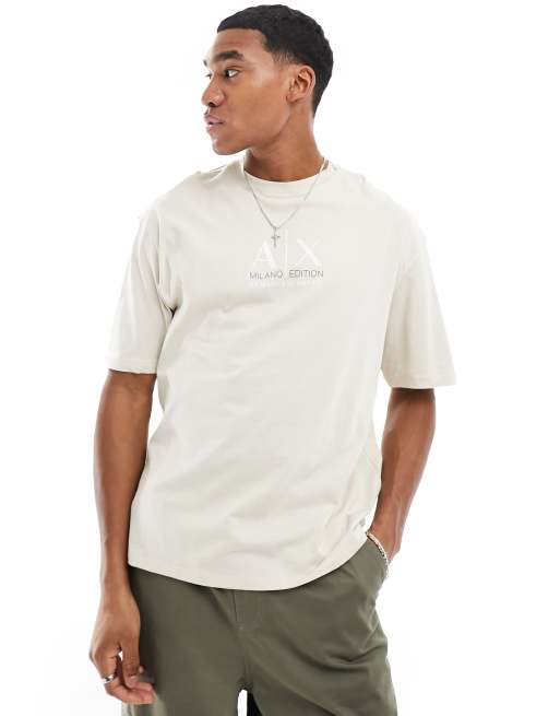 Armani Exchange – Beige, bekväm t-shirt med centrerad logga på bröstet