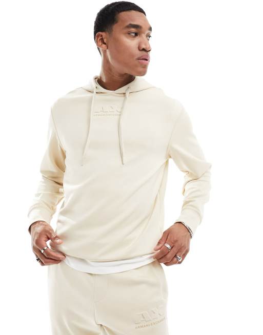 Armani Exchange – Beige huvtröja med centrerad logga, del av set