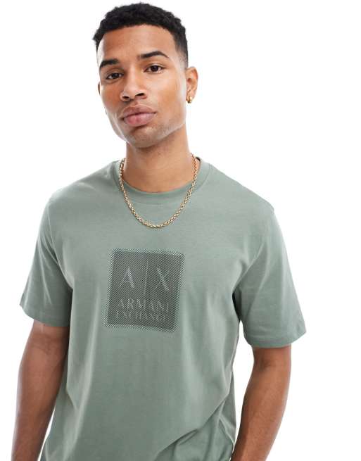 Armani Exchange – Grön t-shirt med fyrkantig logga