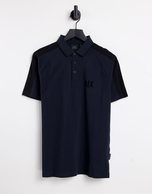 Armani Exchange – Marinblå pikétröja med panel med logga