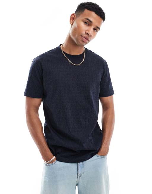 Armani Exchange – Marinblå t-shirt med heltäckande textmönster