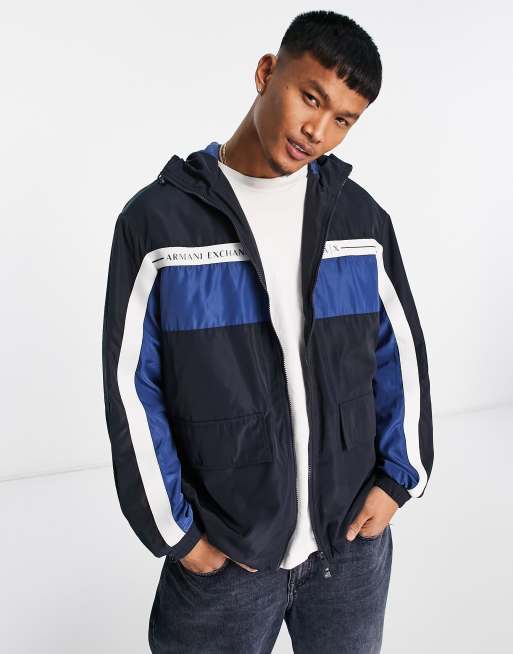 Armani Exchange – Marinblå vindjacka med tejpade detaljer