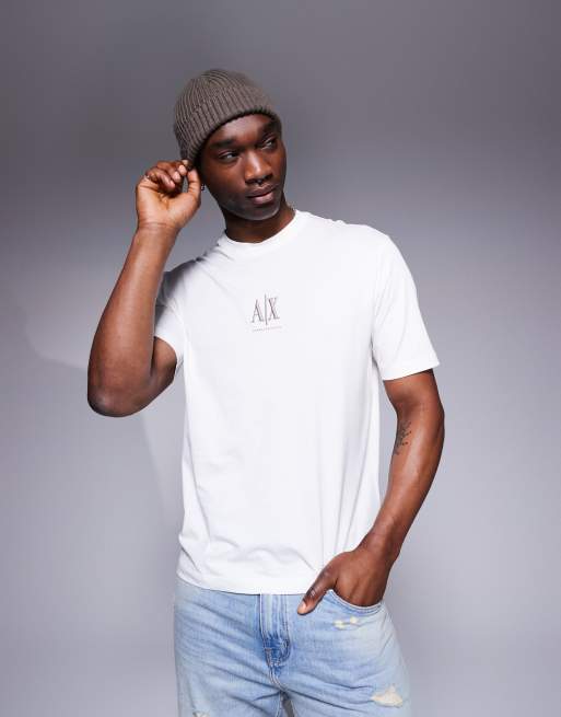 Armani Exchange – Naturvit t-shirt med centrerad logga