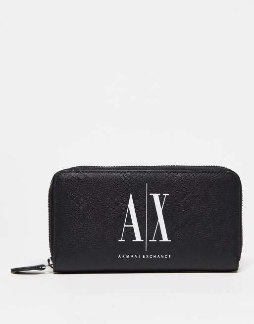 Armani Exchange – Svart plånbok i läder med dragkedja runtom