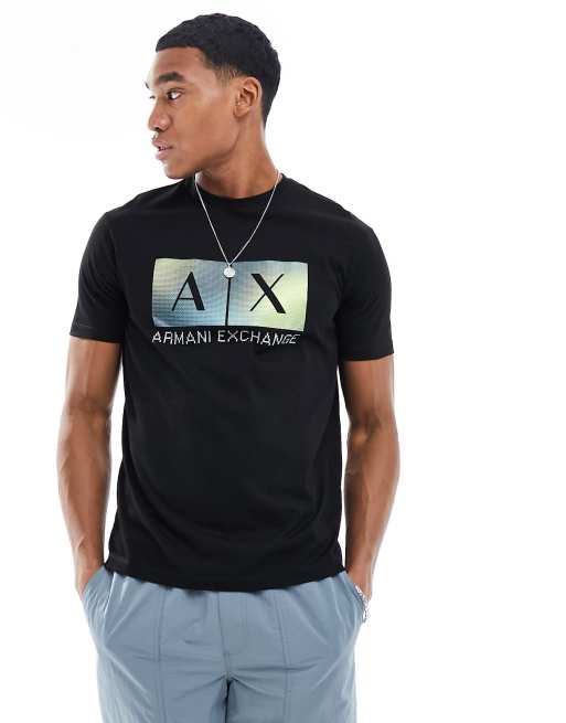 Armani Exchange – Svart t-shirt med boxlogga framtill