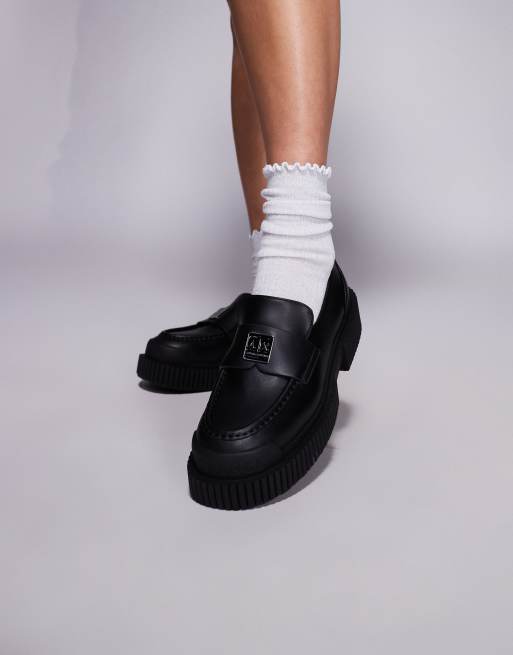 Armani Exchange – Svarta grova loafers med logga