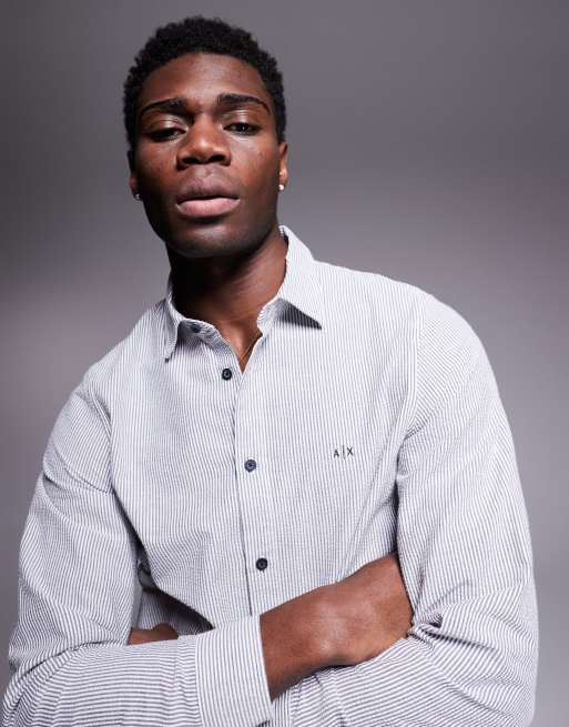 Armani Exchange – Vit och marinblå skjorta med randig logga