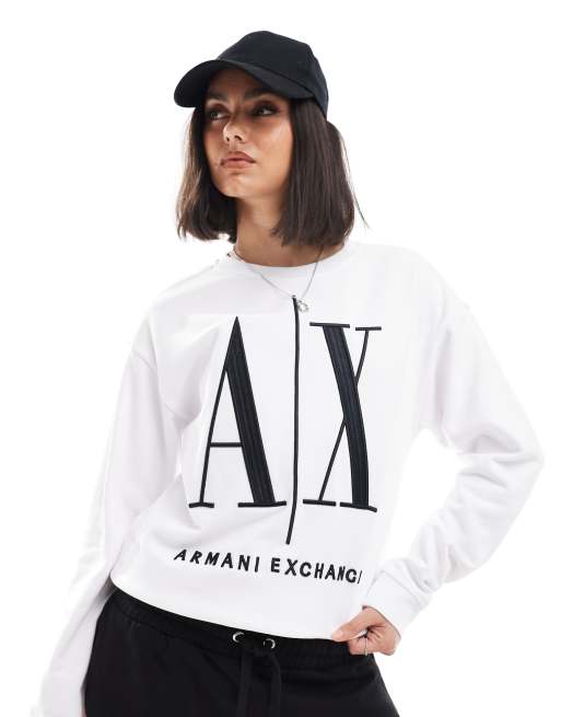 Armani Exchange – Vit sweatshirt med stor logga