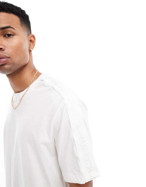 Armani Exchange – Vit t-shirt med loggaband på axlarna