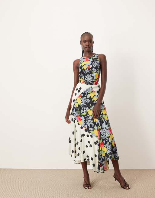 ARRANGE – Blandmönstrad maxiklänning med halterneck och band baktill